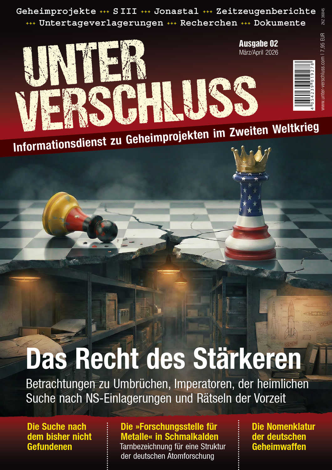 Der 2-monatlich erscheinende Informationsdienst UNTER VERSCHLUSS beleuchtet alle Aspekte der deutschen Geheimwaffen- und Hochtechnologieprojekte.
